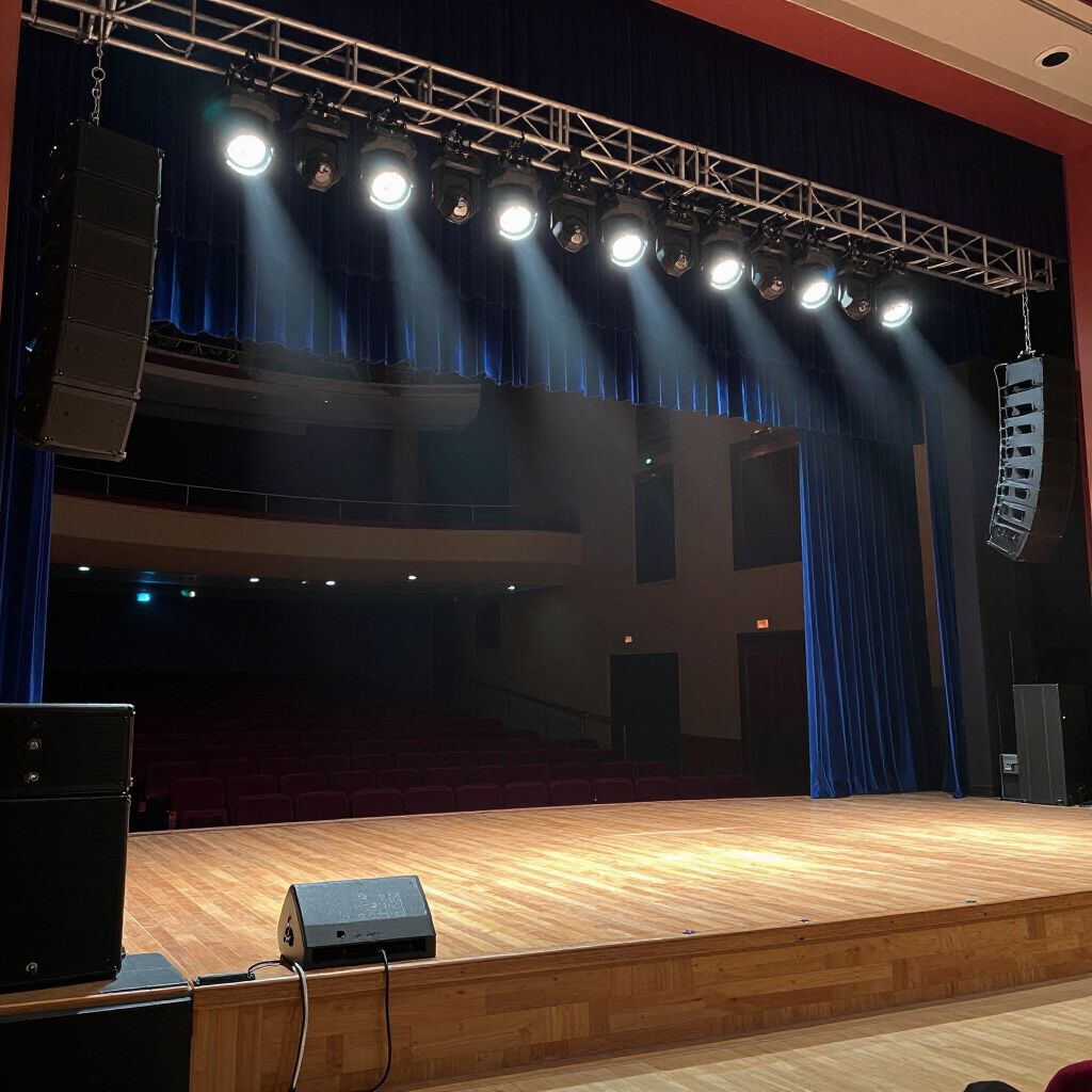 Volledige audiovisuele ondersteuning voor een vlekkeloze theatervoorstelling, inclusief licht- en geluidsregie.